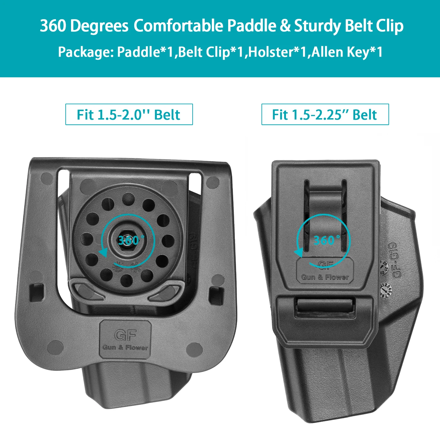 【360 Degrees Adjustable Paddle】Cant is 360 degrees adjustable with Allen Key, allowing you to angle the holster perfectly for Appendix, On Hip, behind hip or cross draw. All the edges are polished and smooth and the soft silicon paddle to make you feel comfortable when it’s again the skin.