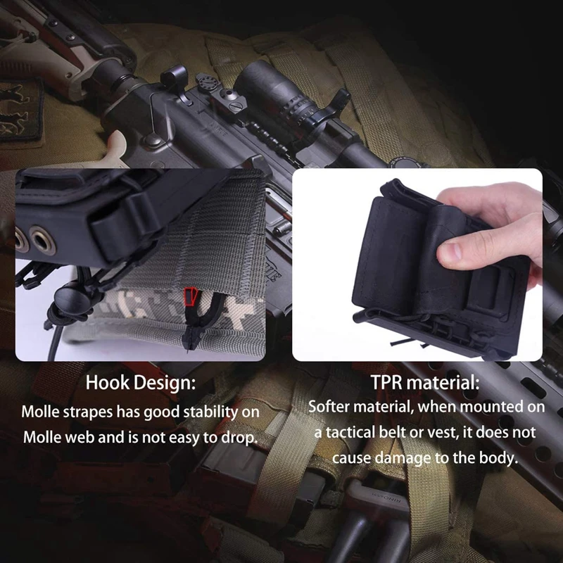 -The back of the Molle straps shape for multi-purpose design, can be loaded on the Molle Web can also on the belt, have a good fastening effect